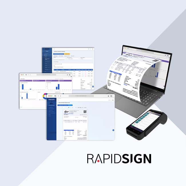 PROVIDER SERVICES RAPIDSIGN RAPIDSIGN service, certified by the Public Administration Authority and installed on the Microsoft Azure Cloud, operates in accordance with the terms and conditions imposed by the provisions of the relevant legislation in force. Whatever commercial application you use to issue sales documents – invoices and receipts – the RapidSign service, through a secure and real-time connection with it, undertakes: – Validity Check – Send to myDATA – Sending to the Beneficiary – Flexible Management – Authentication & Marking – Archiving & Preservation